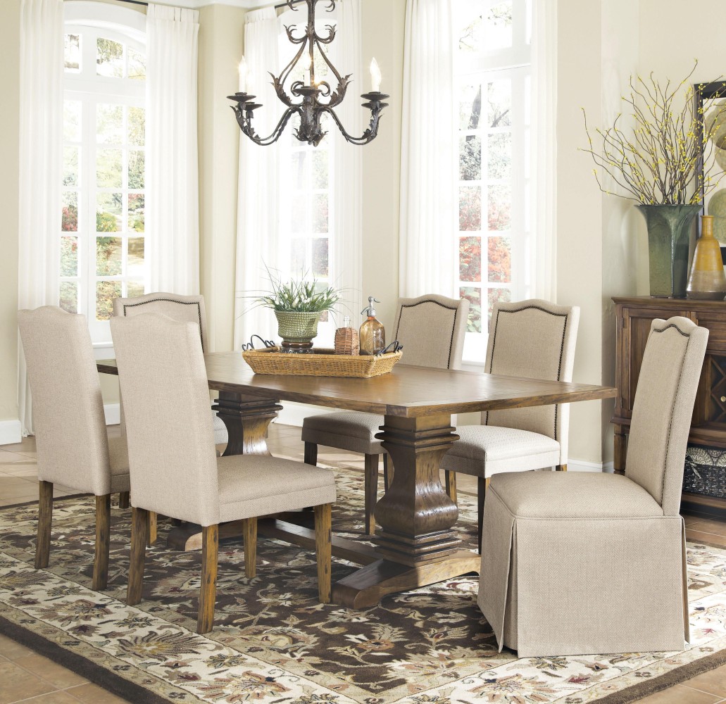 Parkins 7 Piece Dining Table and Chair Set with Parson Chairs & Parson Chairs w/ Skirt
